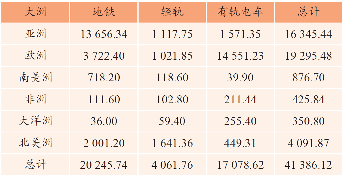 ຮູບ 1 ບົດສະຫລຸບຂອງການປະຕິບັດການຂ້າມທາງລົດໄຟໃນຕົວເມືອງໂດຍທະວີບໃນໂລກໃນປີ 2022 (ກມ)