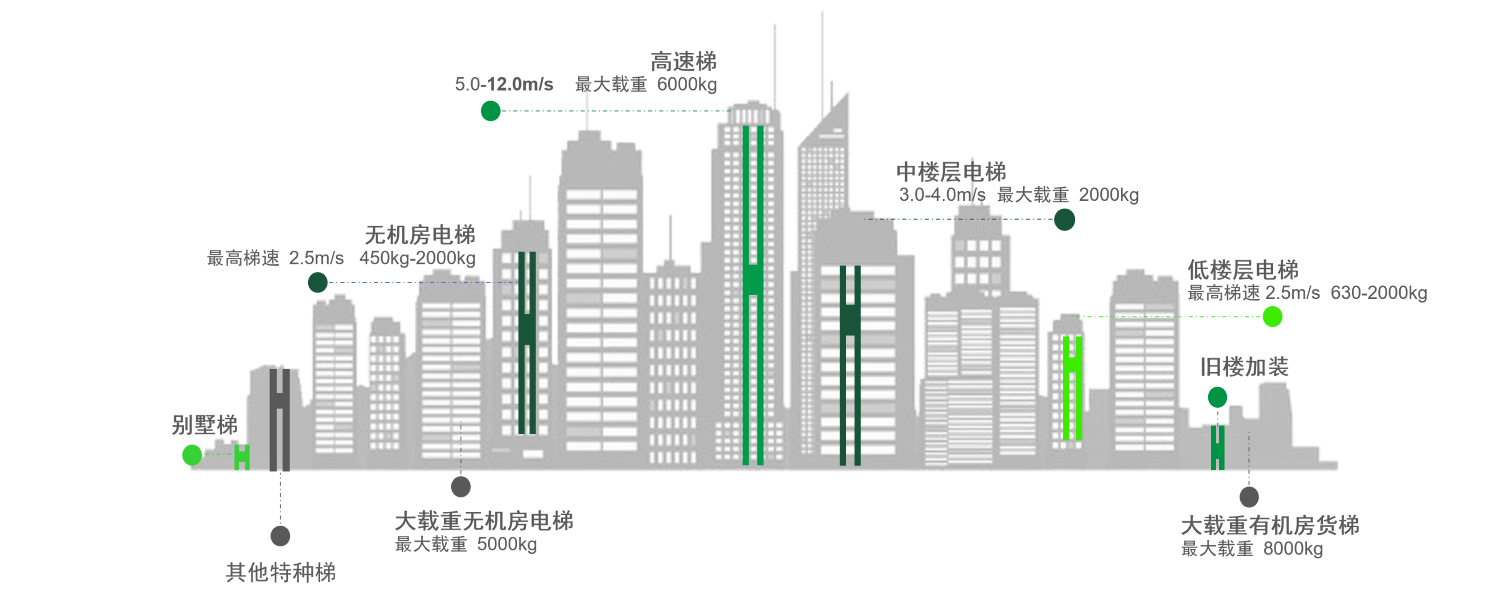 ພວກເຮົາສະເຫນີໃຫ້ບໍລິການລະດັບຄວາມຫຼາກຫຼາຍຂອງເຄື່ອງ traction ແລະ mainframes ທີ່ເຫມາະສົມສໍາລັບສະຖານະການຂອງການນໍາໃຊ້ທີ່ມີຄວາມສາມາດໂຫຼດສູງສຸດ 6000kg (2:1 ອັດຕາສ່ວນ) ແລະຄວາມໄວສູງສຸດ 12m/s (1:1 ອັດຕາສ່ວນ). ລູກຄ້າສາມາດເລືອກແບບທີ່ເຫມາະສົມໂດຍກົງໂດຍອີງໃສ່ຕົວກໍານົດການລິຟ, ເຮັດໃຫ້ວົງຈອນການອອກແບບສັ້ນລົງ.