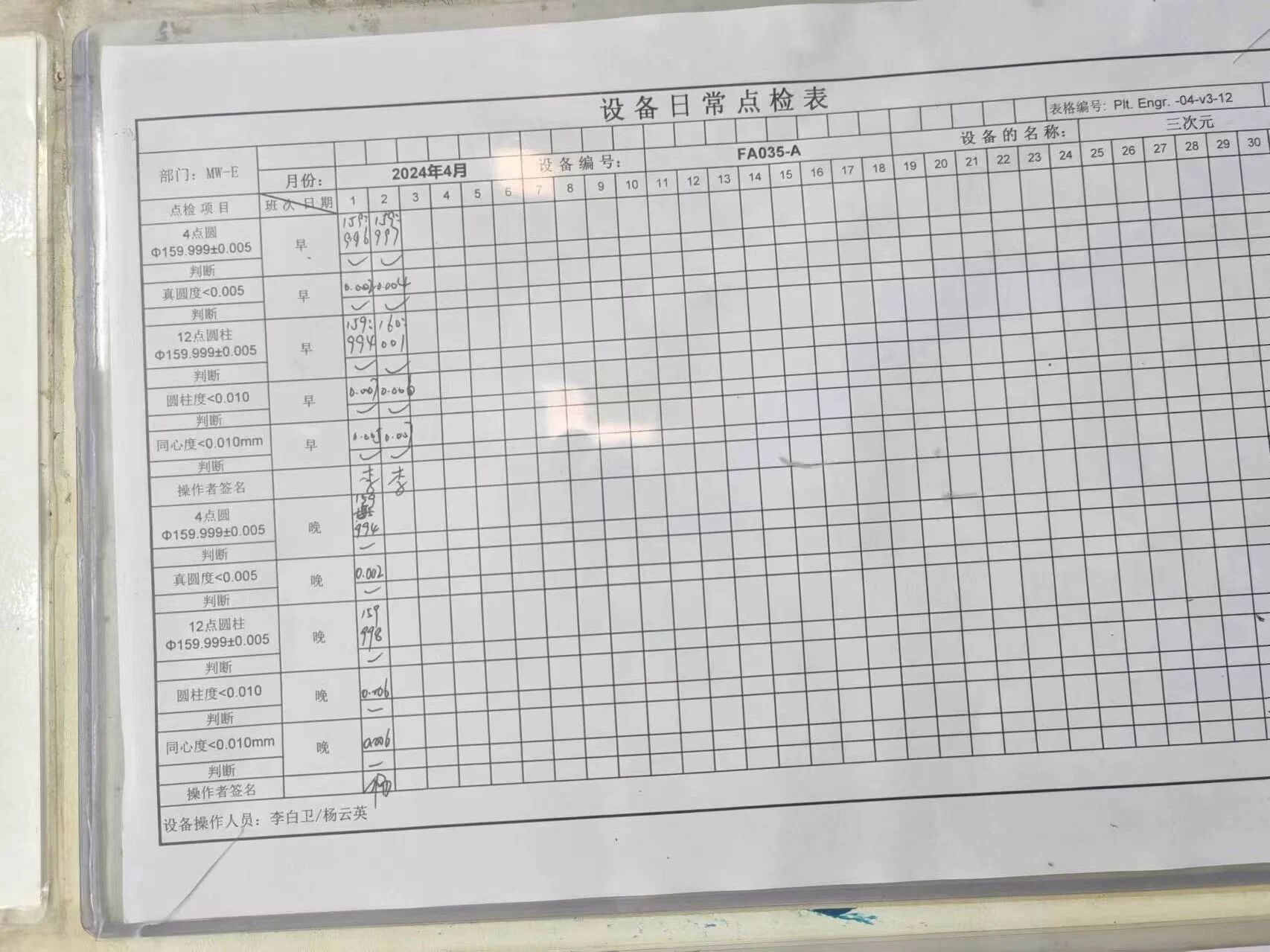 •ເອກະສານກວດສອບປະຈໍາວັນສໍາລັບການຕິດຕາມສະຖານະພາບຂອງອຸປະກອນ